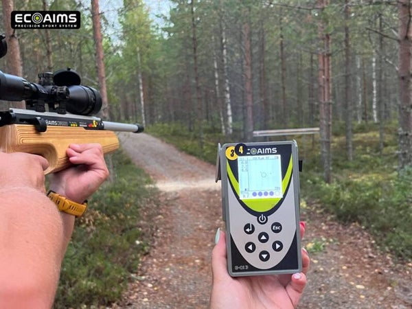 The display connects to your rifle via a wireless radio connection and to the target with a cable. Connecting and using is easy, and you can start practicing immediately.